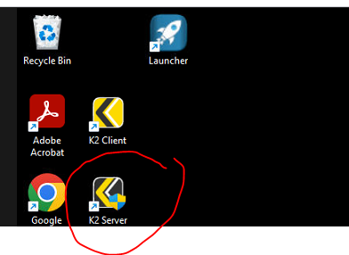 Are you going to run a copy of the Client application on your Server computer? Then use our Launcher application to start both applications at the same time. If you don't plan to use the K2 computer as a user workstation, then skip to the 2nd method. (More about the Launcher and what you can do with it)