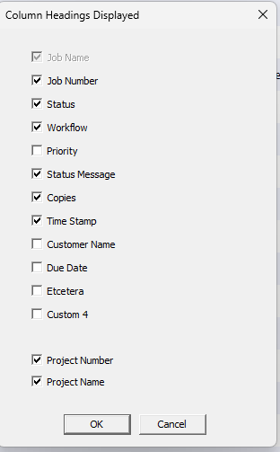 K2 Workflow includes a range of features for organizing lists of jobs and related information for users. Some of the most powerful are the Custom Fields. These are four fields that can contain any information the user wishes. This information is then available for display and sorting purposes by each user from within their Clients.