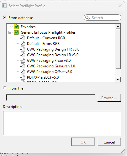Import Files... will allow you to import Enfocus Action Lists and Preflight Profiles from Enfocus Pitstop to use with the Preflight Action.