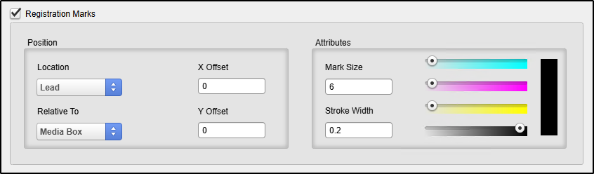 When Registration Marks are enabled for a mark set, you are able to set several properties.