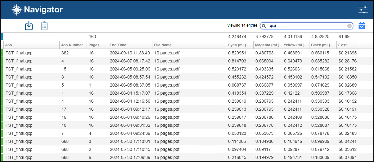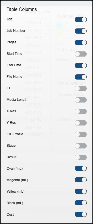 Column visibility is for the ink use calculator only. Settings here do not change what is seen in the DFE, and vice versa.