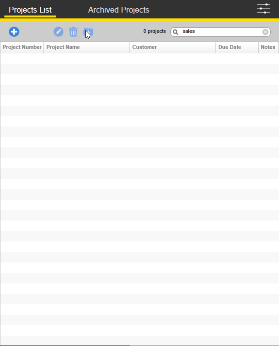 Projects and their accompanying job components can be archived after production is completed. Simply highlight the job that you wish to archive and click the archive button. The project will then be removed from the project list and available in the Archived Projects tab.