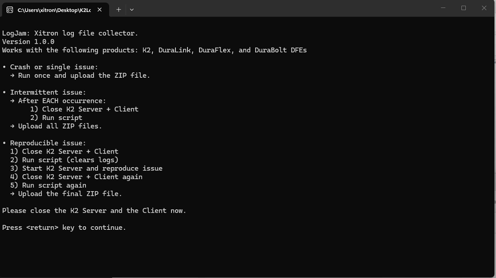When issues arise, the logs represent one of the fastest ways to receive assistance from Xitron's support team.