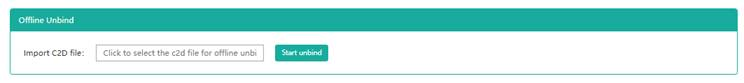 Click the button to select the c2d file saved earlier. Click Start unbind to unbind the license.